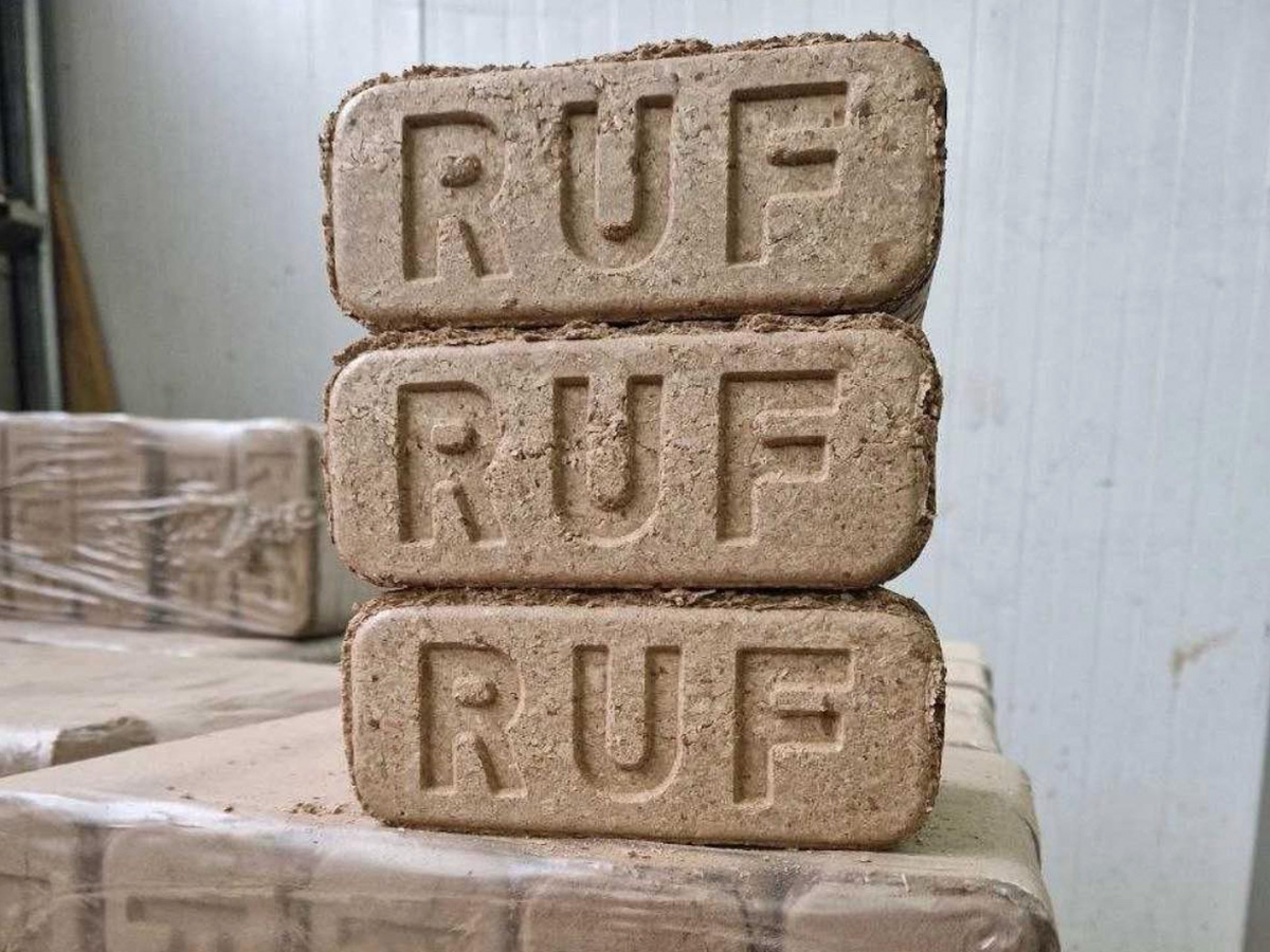 Брикети RUF — це щільно пресовані прямокутні блоки з тирси дуба, без клеїв та хімії. Мають високу теплотворну здатність і мінімальну зольність. Це зручно, чисто, екологічно.